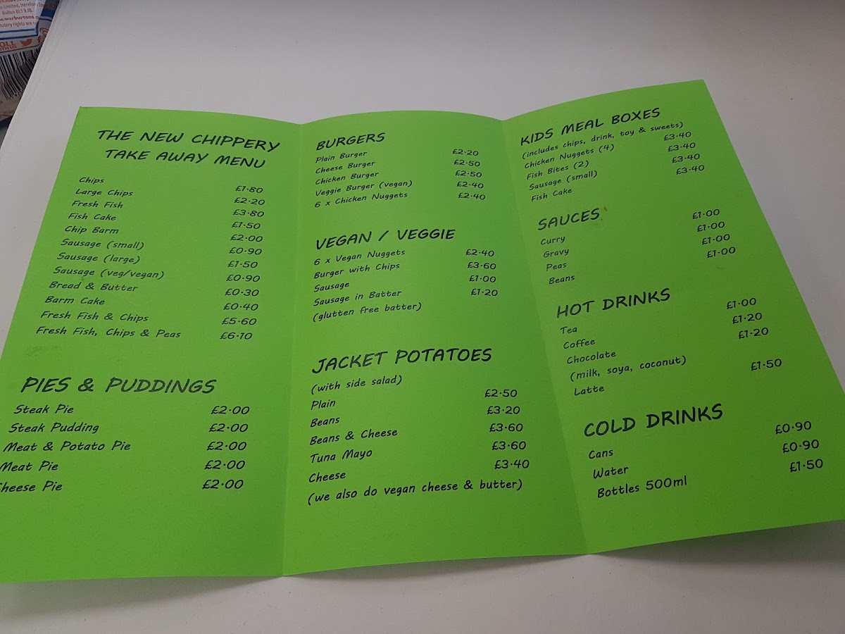 Welcome to The New Chippery, a culinary gem nestled on Market St, Wigan. This delightful eatery specializes in traditional fish and chips, serving an array of classic dishes that cater to both meat-lovers and vegans alike. Customers rave about the crispy fish fillets and golden chips cooked to perfection, with options like scampi, steak pies, and a selection of pies that tantalize the taste buds.
